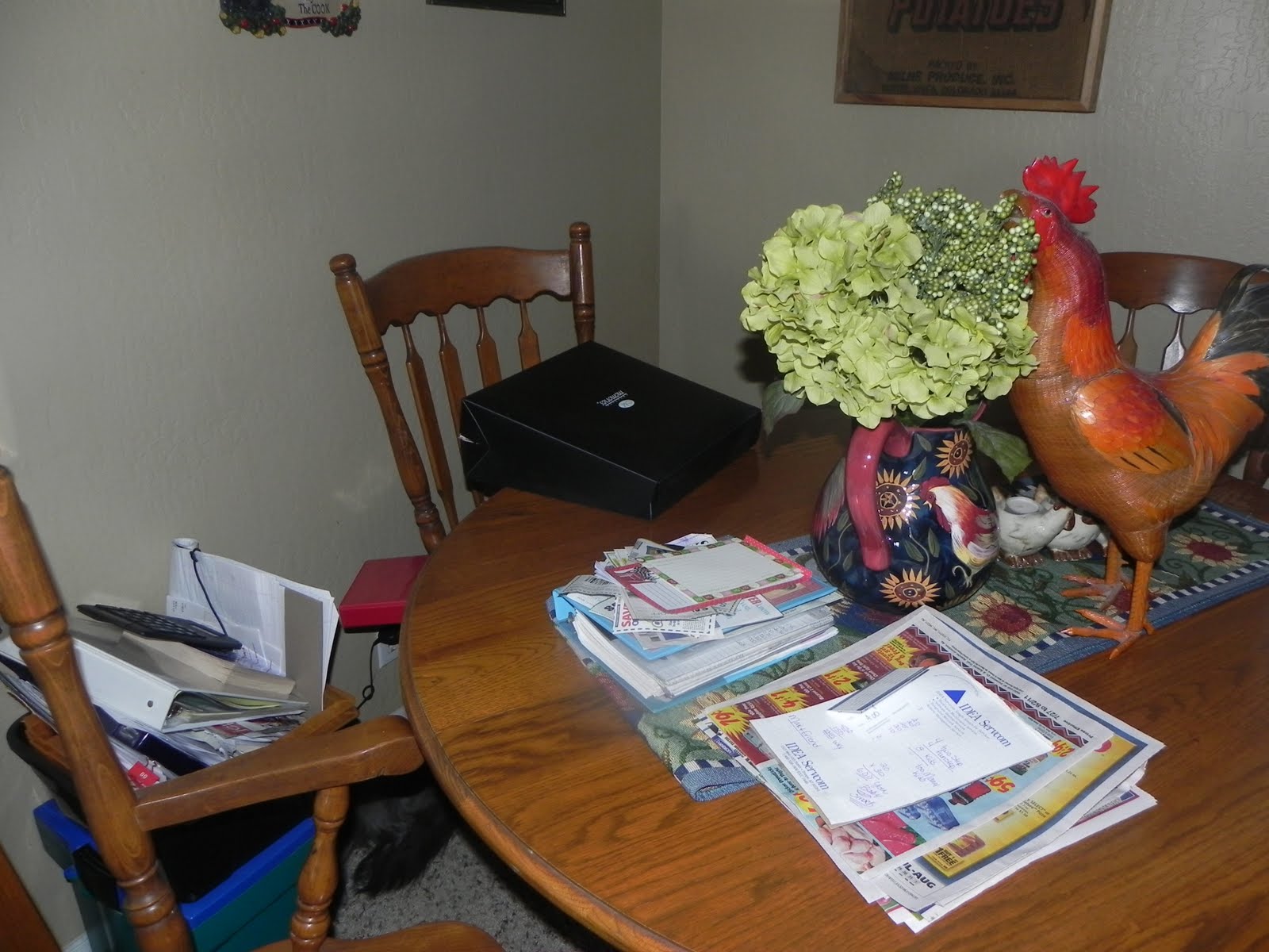 Now on to the next challenge -- PAPER. I had to clean off the table so I would have a place put all my stuff after I cleaned off the counter and gathered all my piles, binders, etc. for the next challenge.