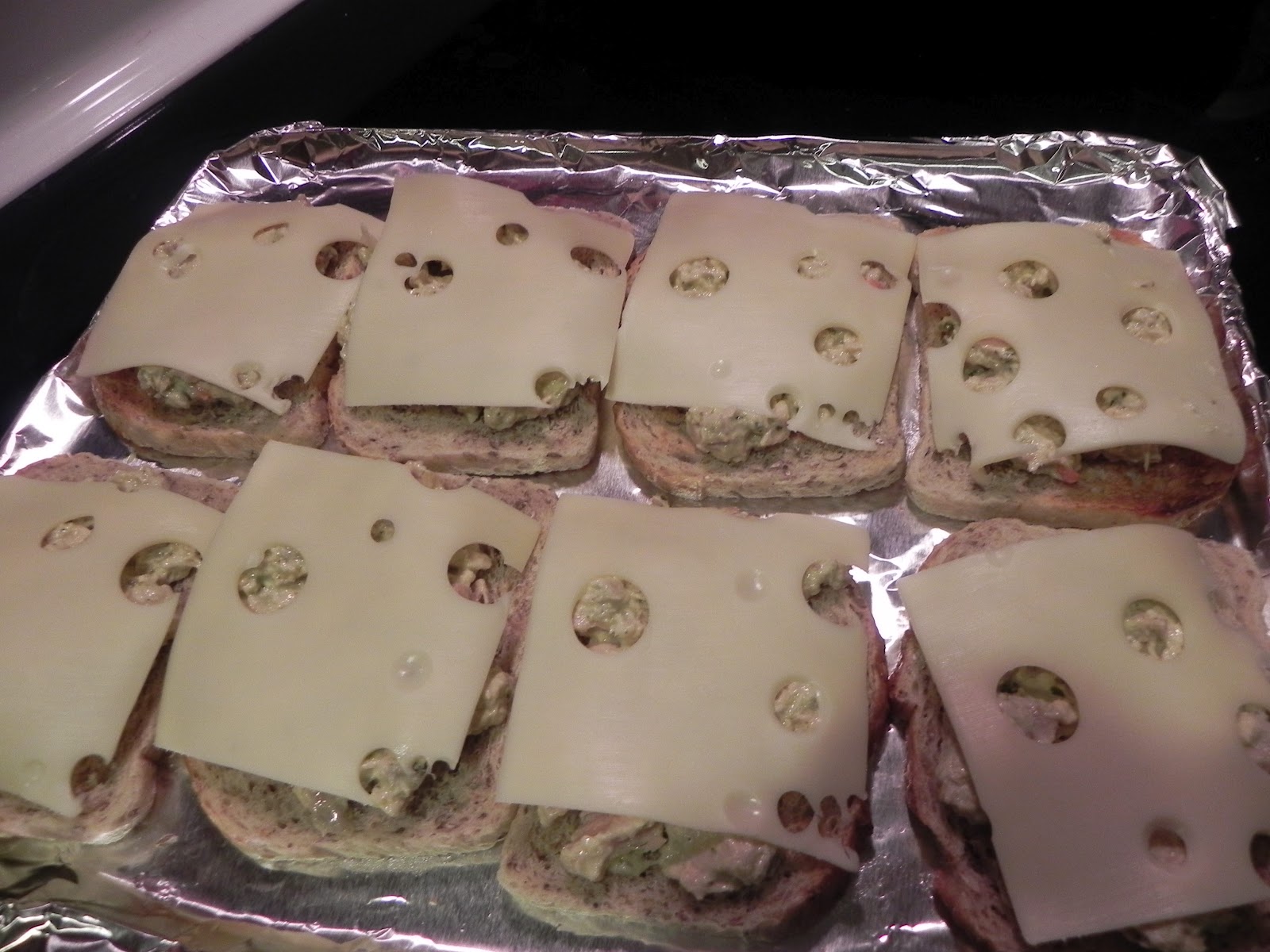 Scoop it onto toasted rye bread (my son brought me some wonderful rye bread from The Bread Smith)and  top with Swiss cheese.  Broil for about 3 to 5 minuets until bubbly.